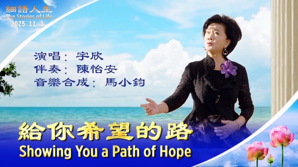 無論天多冷、路多難, 他們都一步一步,堅定地走了過來, 二十六個年頭,春去秋來,歲月流轉,初心未改。 只因心中那份堅定的信念- 只為給你一條—通往希望的路。 給你希望的路 演唱:宇欣 伴奏:陳怡安 音樂合成:馬小均 我們為了誰風雨無阻 我們為了誰風餐露宿 站在街頭的是大法弟子 手中的傳單滲透著慈悲與辛苦 只為把你從危難中救度 明白真相你才會看清前途 我們不是為了回報 只想給你一條希望的路 Showing You a Path of Hope Yu Xin: Soprano Piano: Chen Yian Music Synthesis: Ma Xiaojun We are stopped by neither wind nor rain, all for whom? We eat and sleep on the street, all for whom? Standing on the sidewalk, disciples of Dafa Leaflets in...